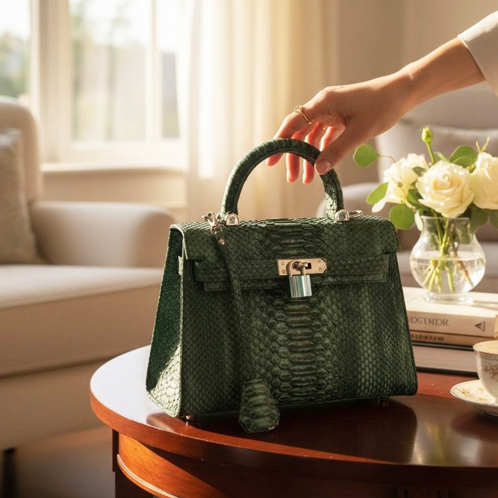 Глибокий відтінок зеленого + унікальна текстура пітона — кожна сумка неповторна