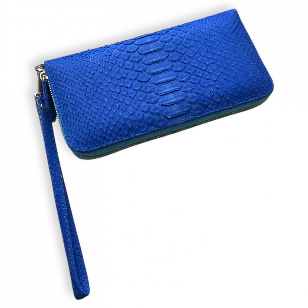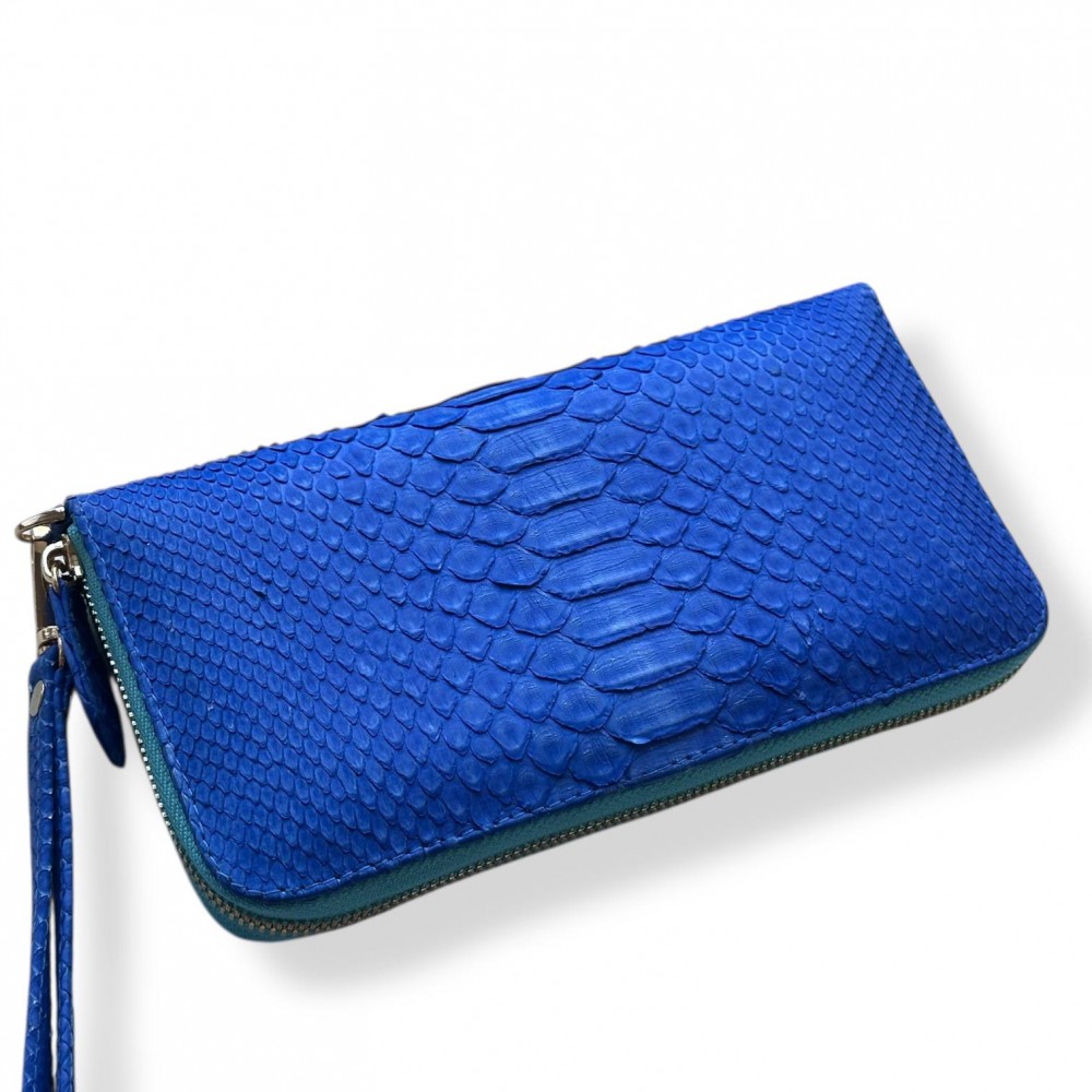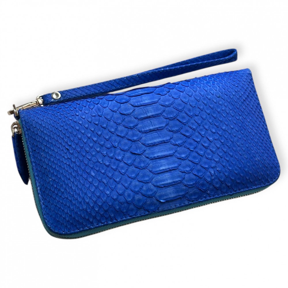 Гаманець зі шкіри пітона Lori (blue nubuk) з ремінцем
