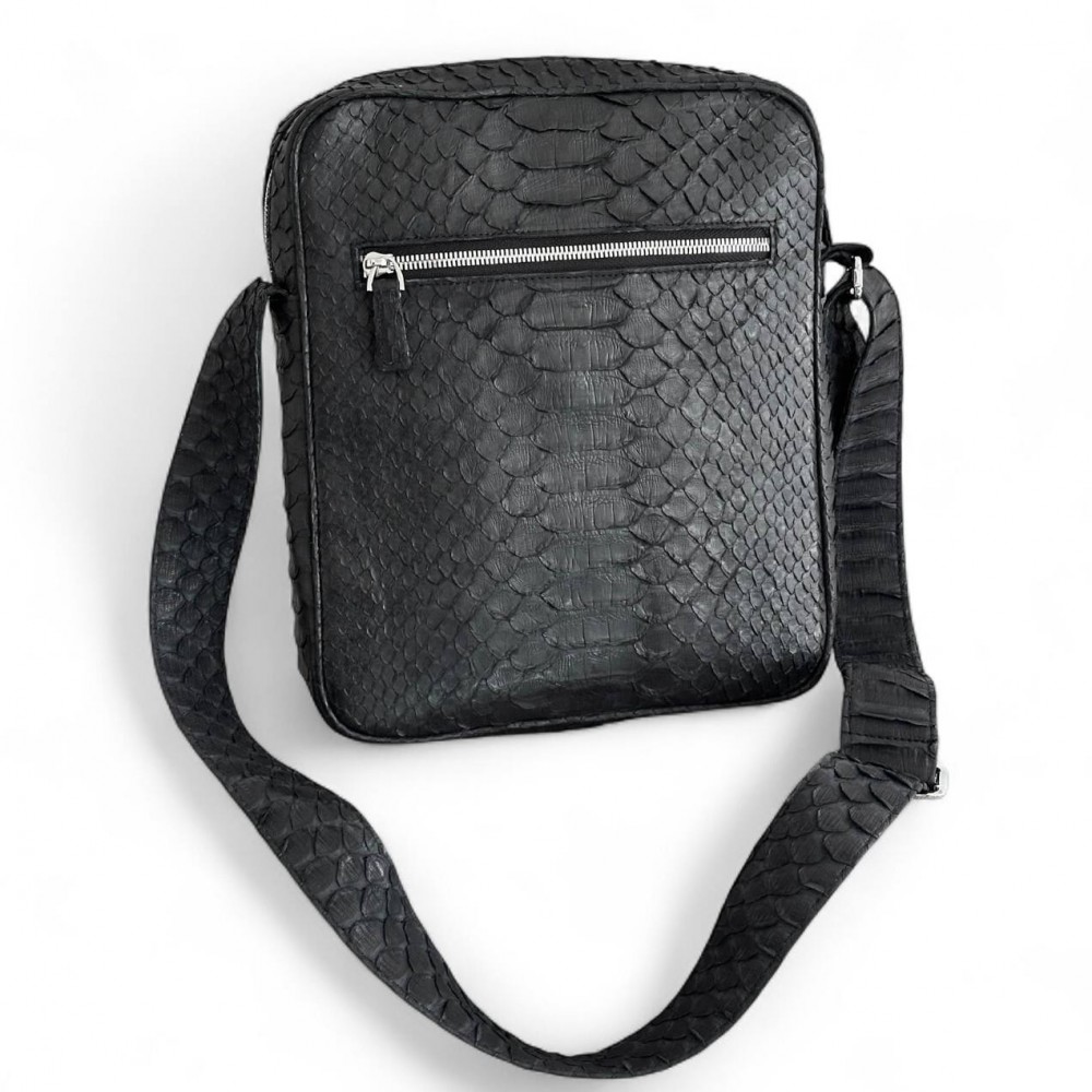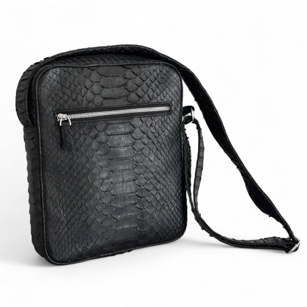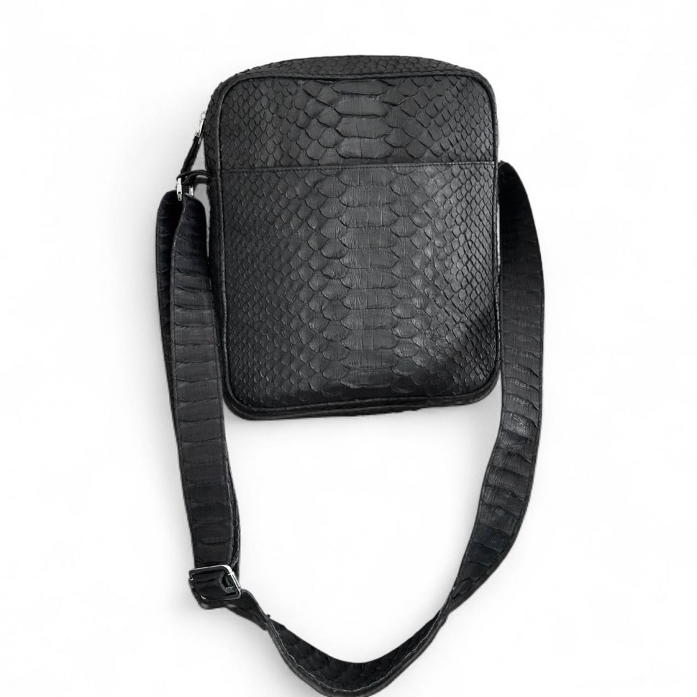Мужская сумка из кожи питона Rolph (черная матовая)