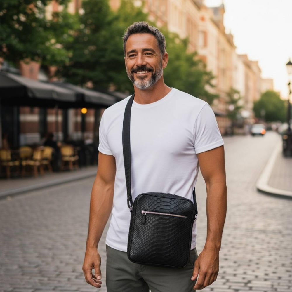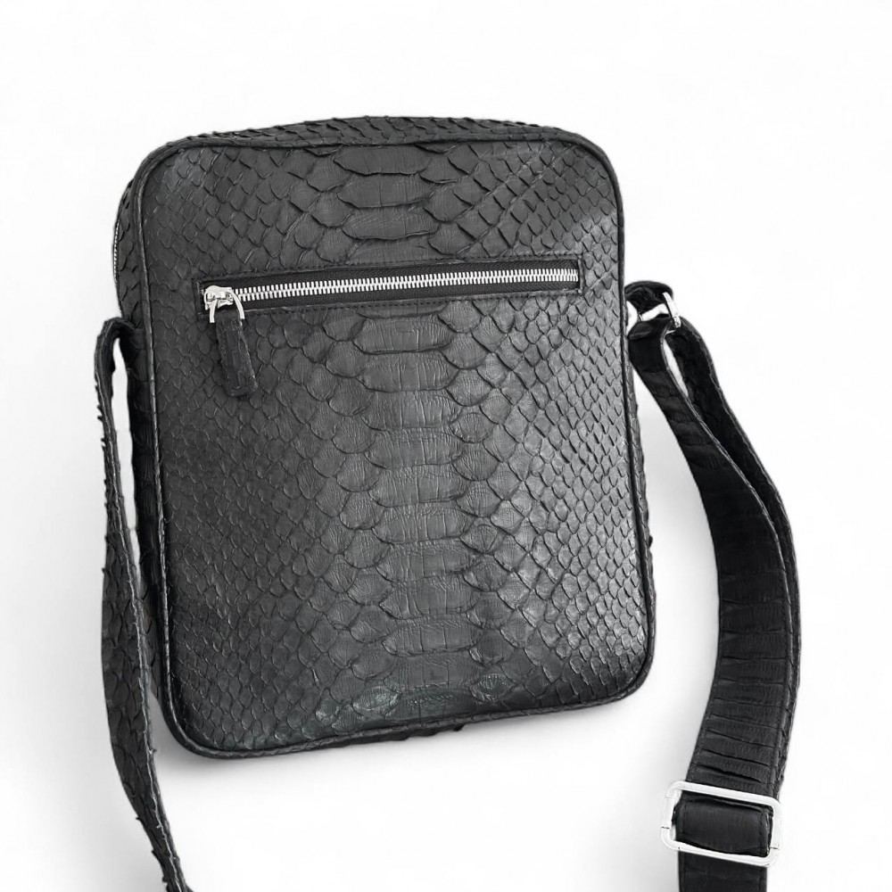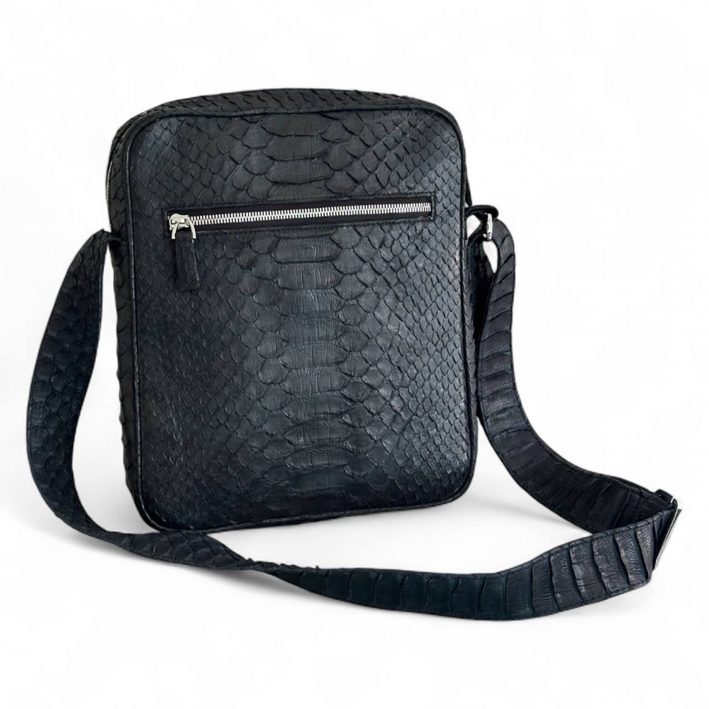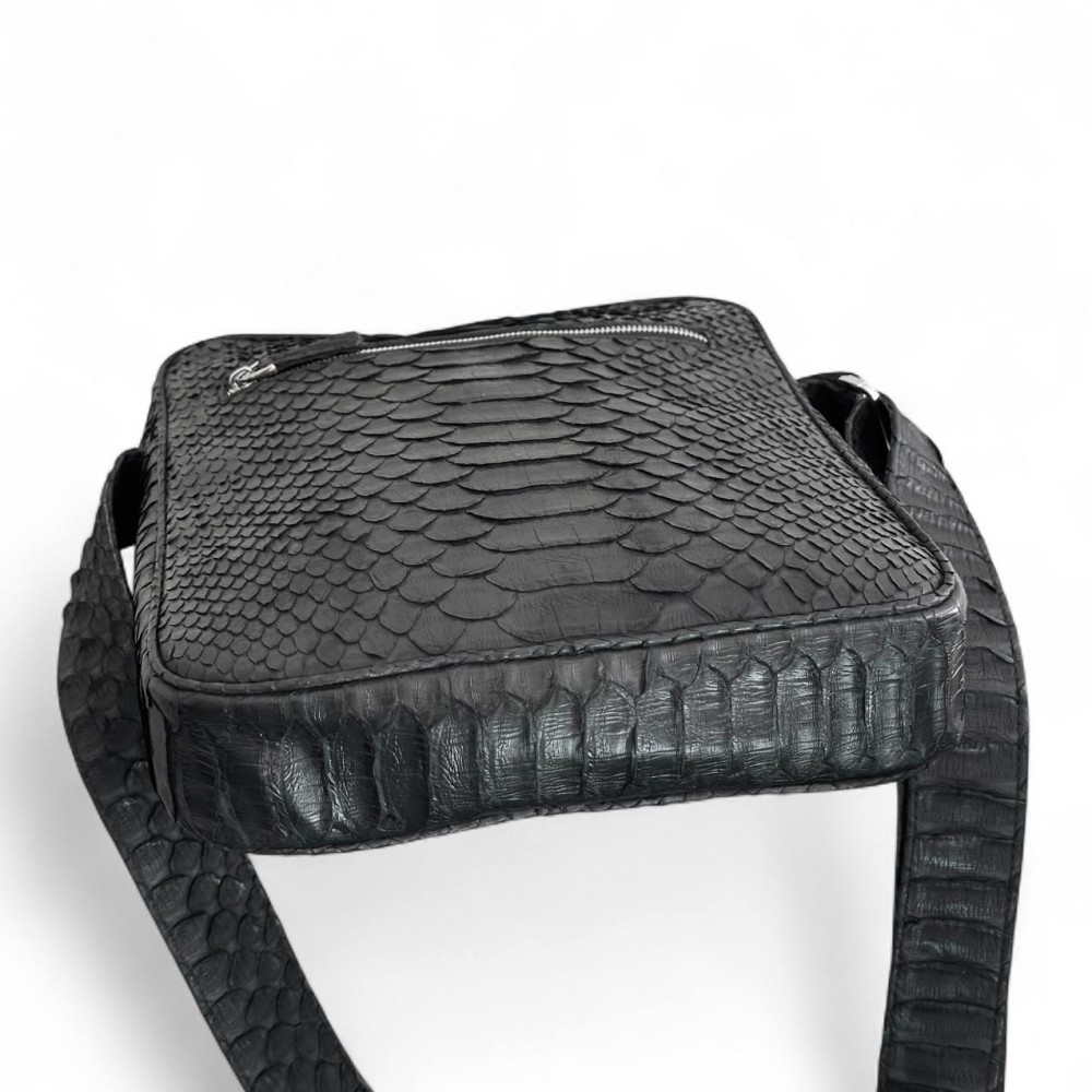 Мужская сумка из кожи питона Rolph (черная матовая)