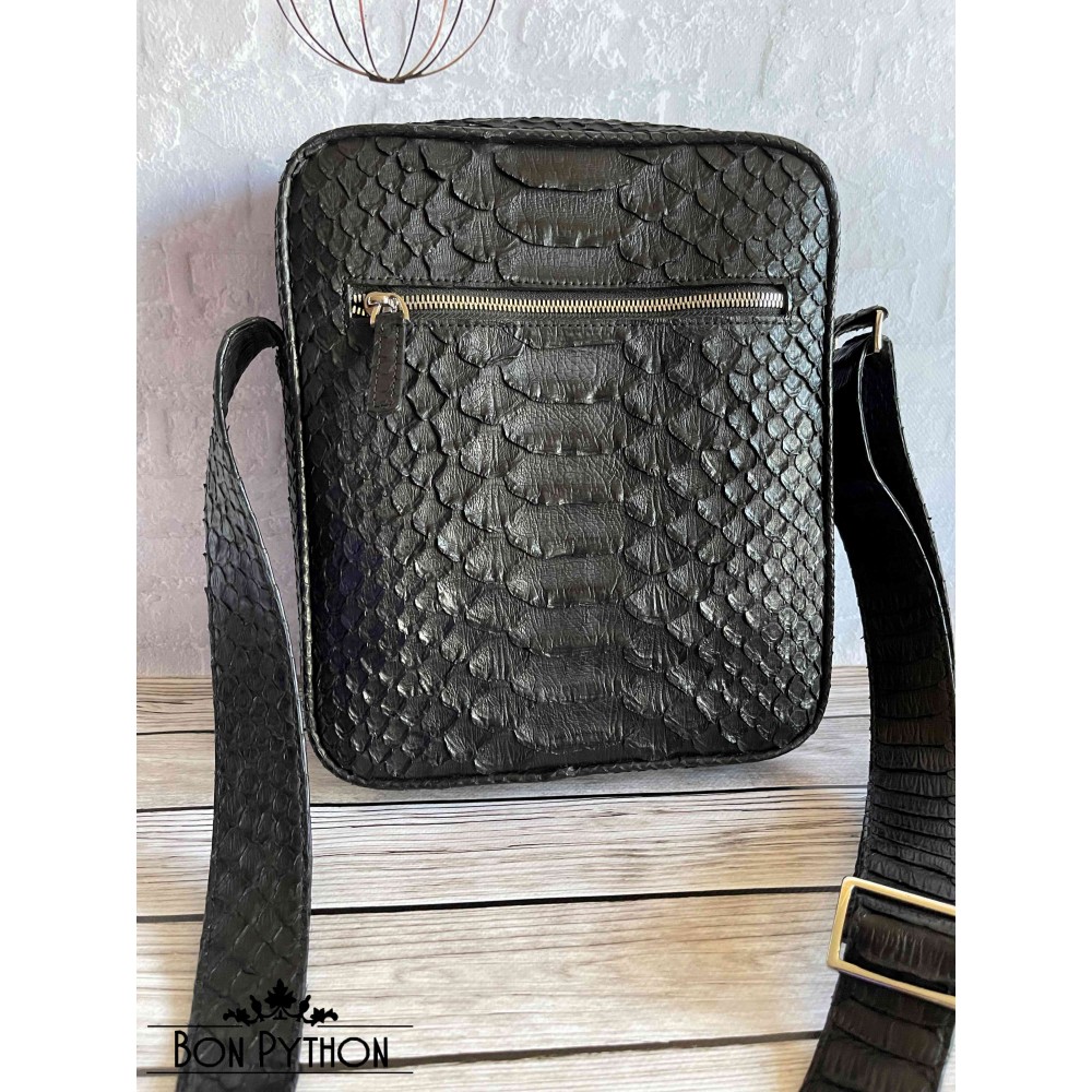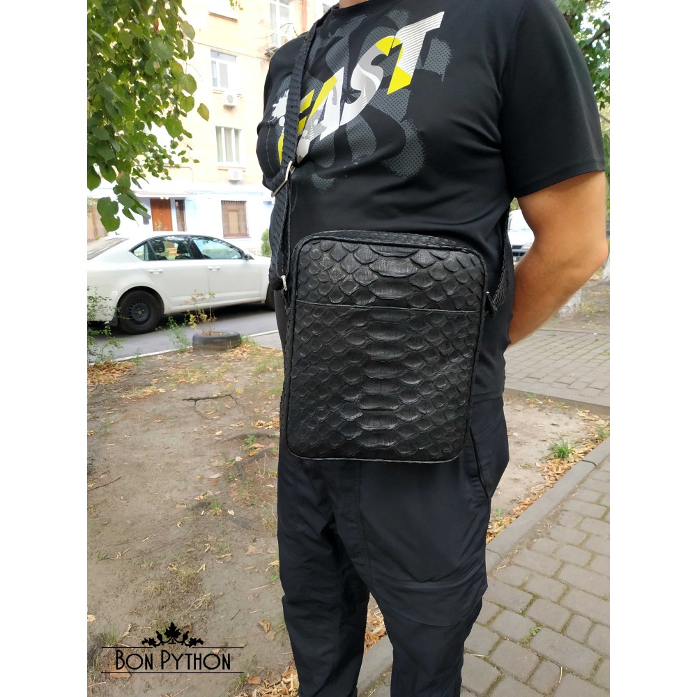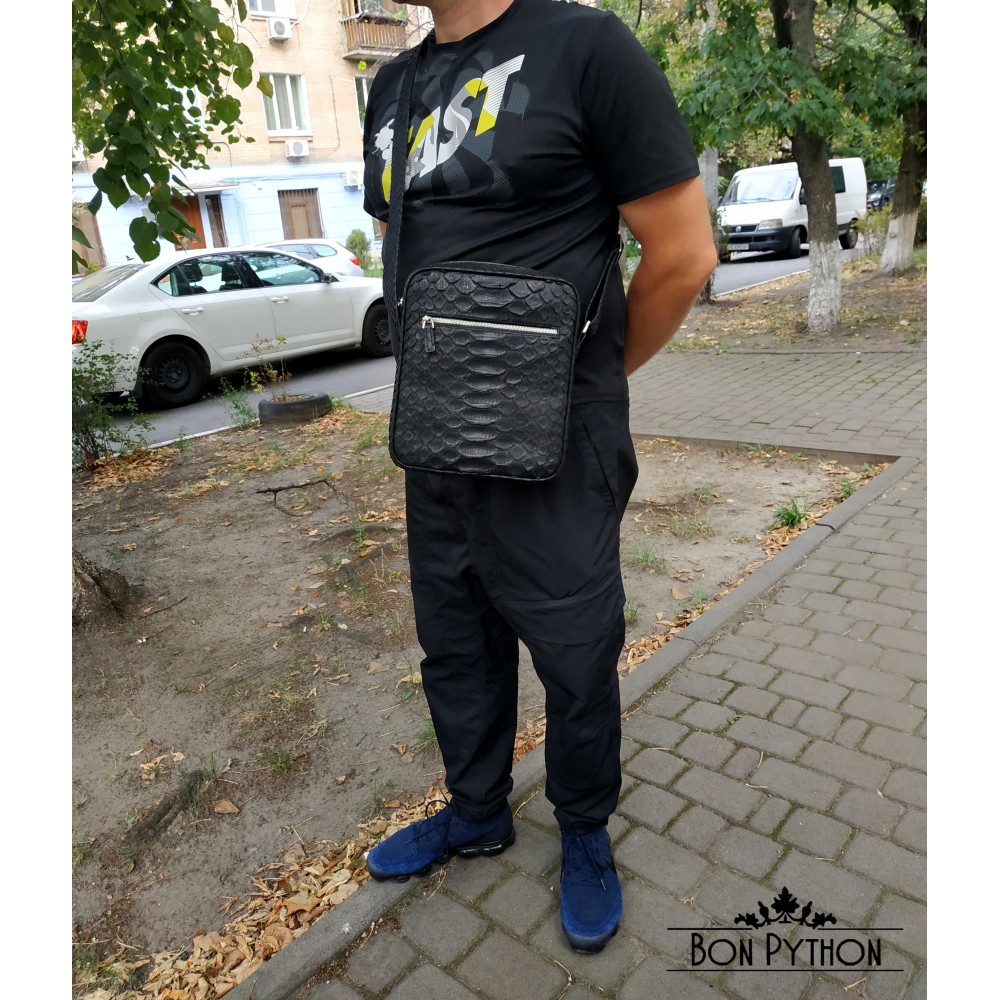 Мужская сумка из кожи питона Sanford (черная Dragon)