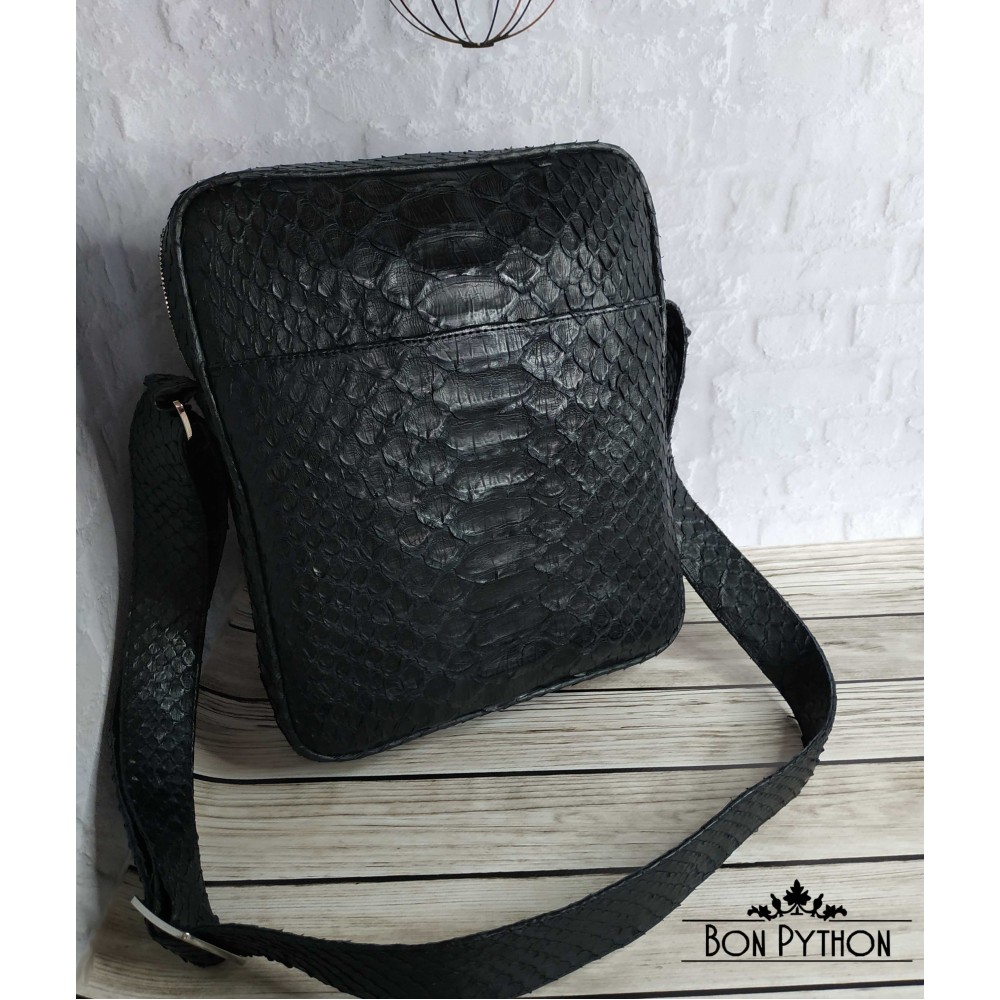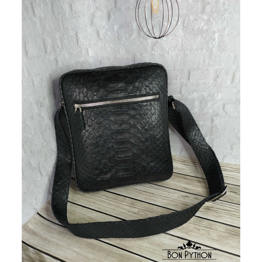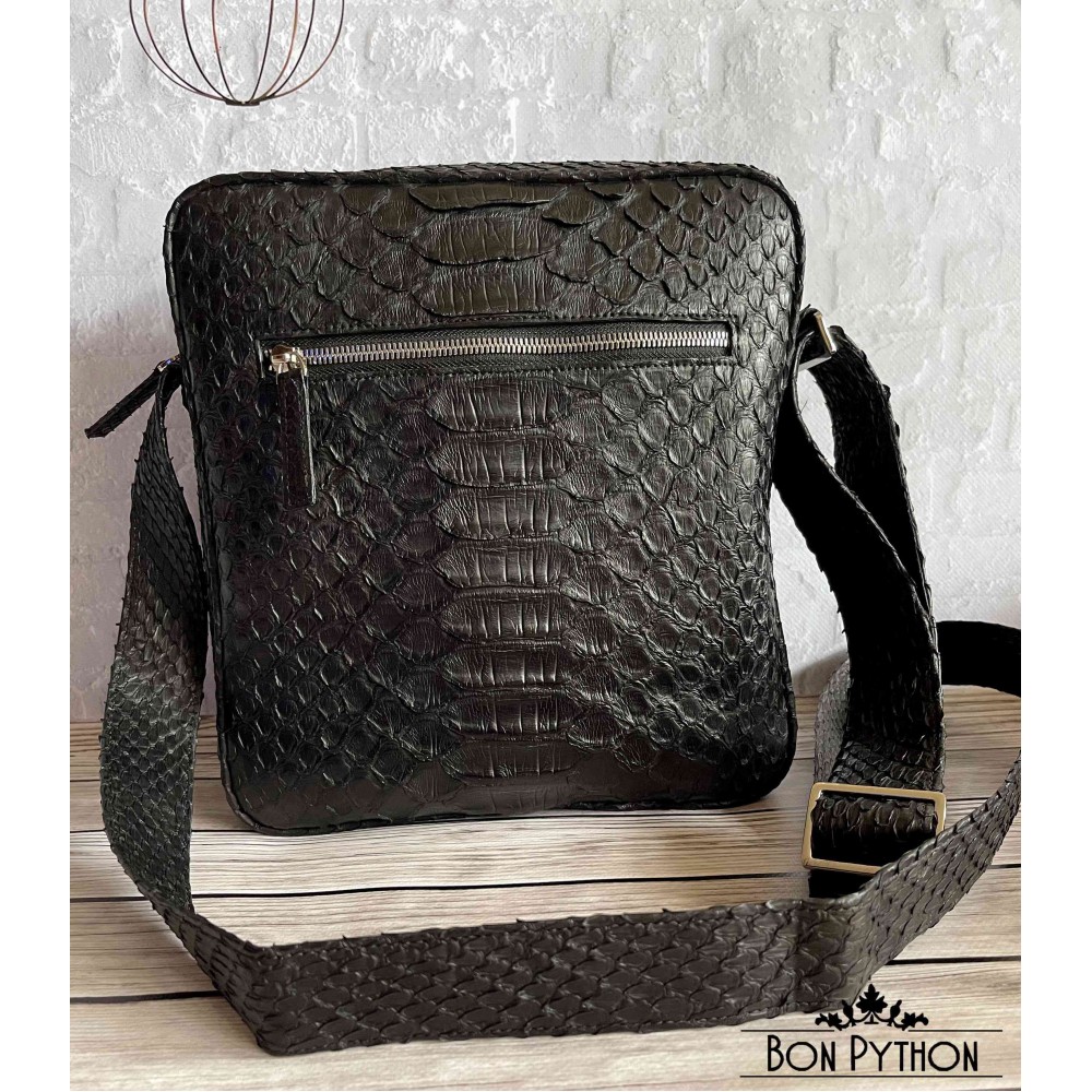 Модная, универсальная мужская сумка через плечо из натуральной кожи питона Dragon. Данная модель имеет один врезной карман на молнии с лицевой стороны и один накладной карман с обратной стороны. Внутри два кармана для телефона и прочих необходимых вещей, а также один карман на молнии.