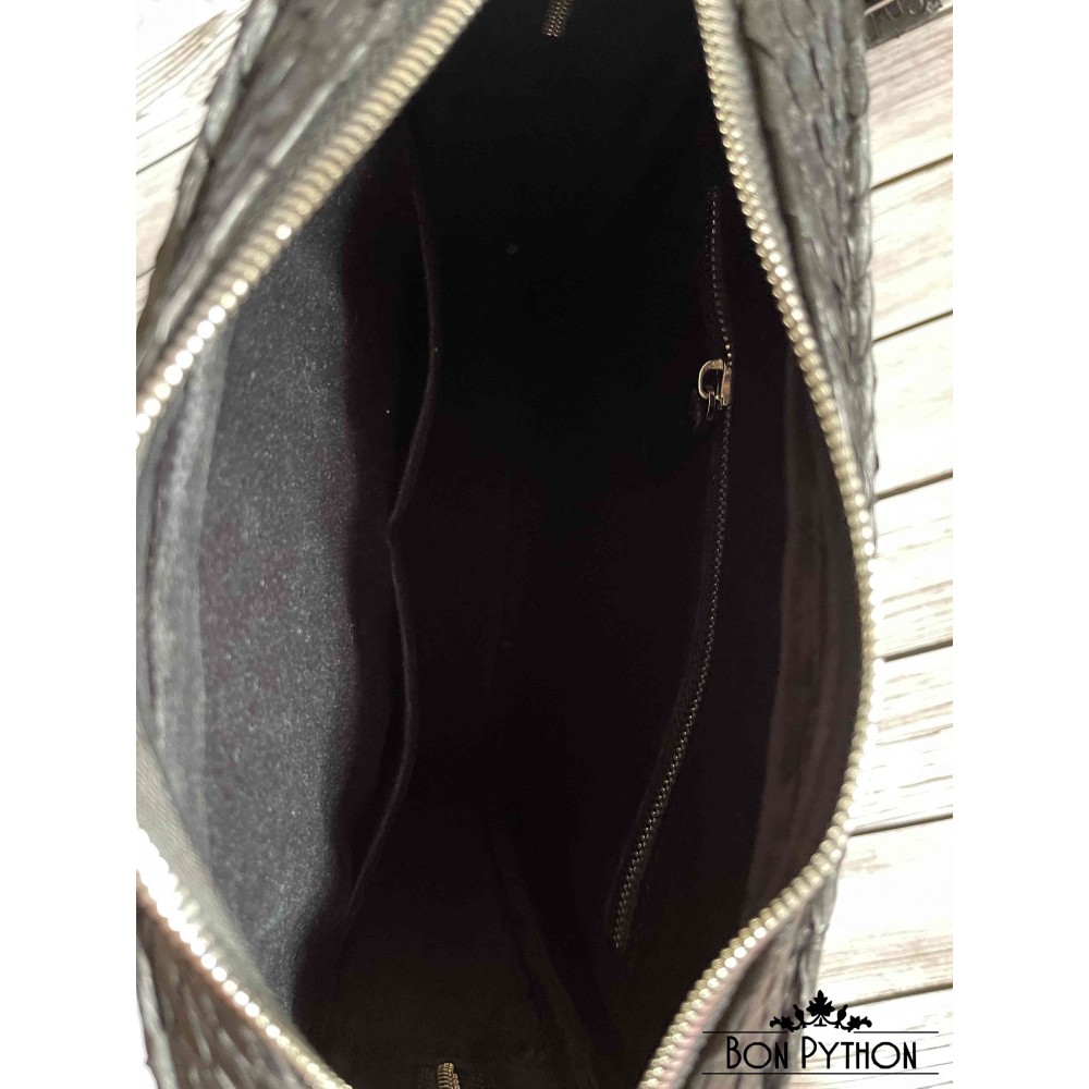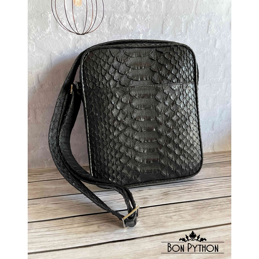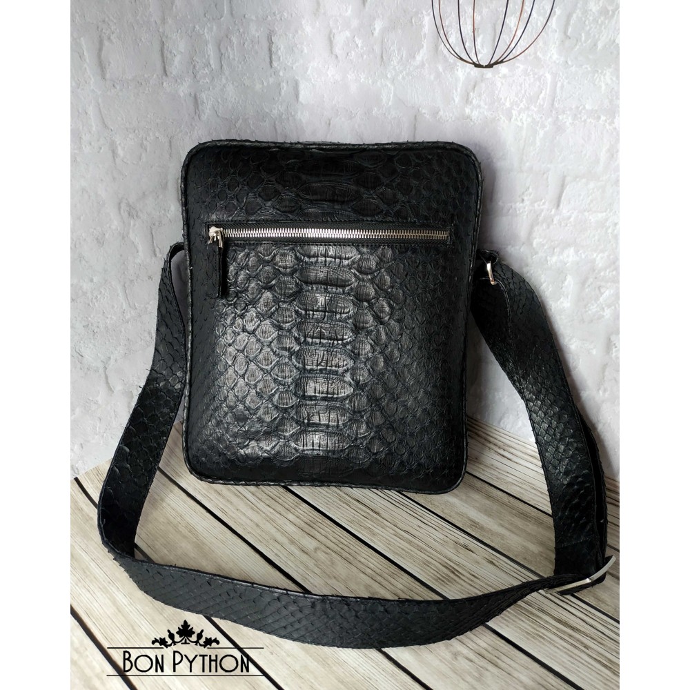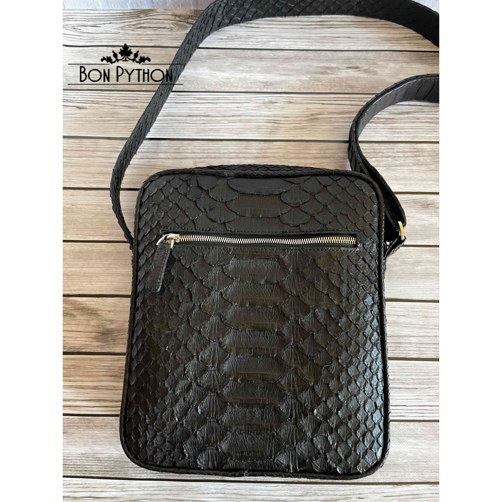 Модная, универсальная мужская сумка через плечо из натуральной кожи питона Dragon. Данная модель имеет один врезной карман на молнии с лицевой стороны и один накладной карман с обратной стороны. Внутри два кармана для телефона и прочих необходимых вещей, а также один карман на молнии.