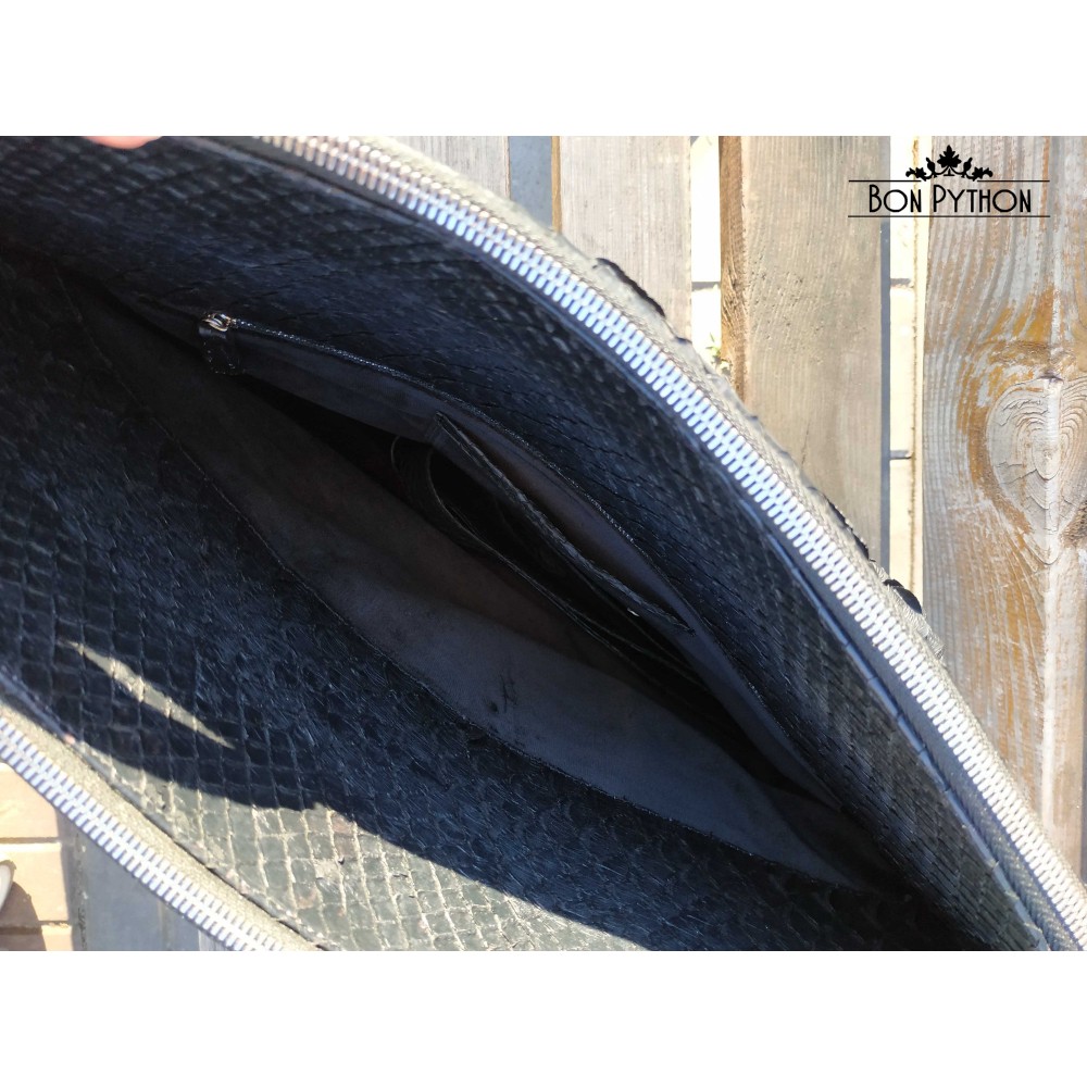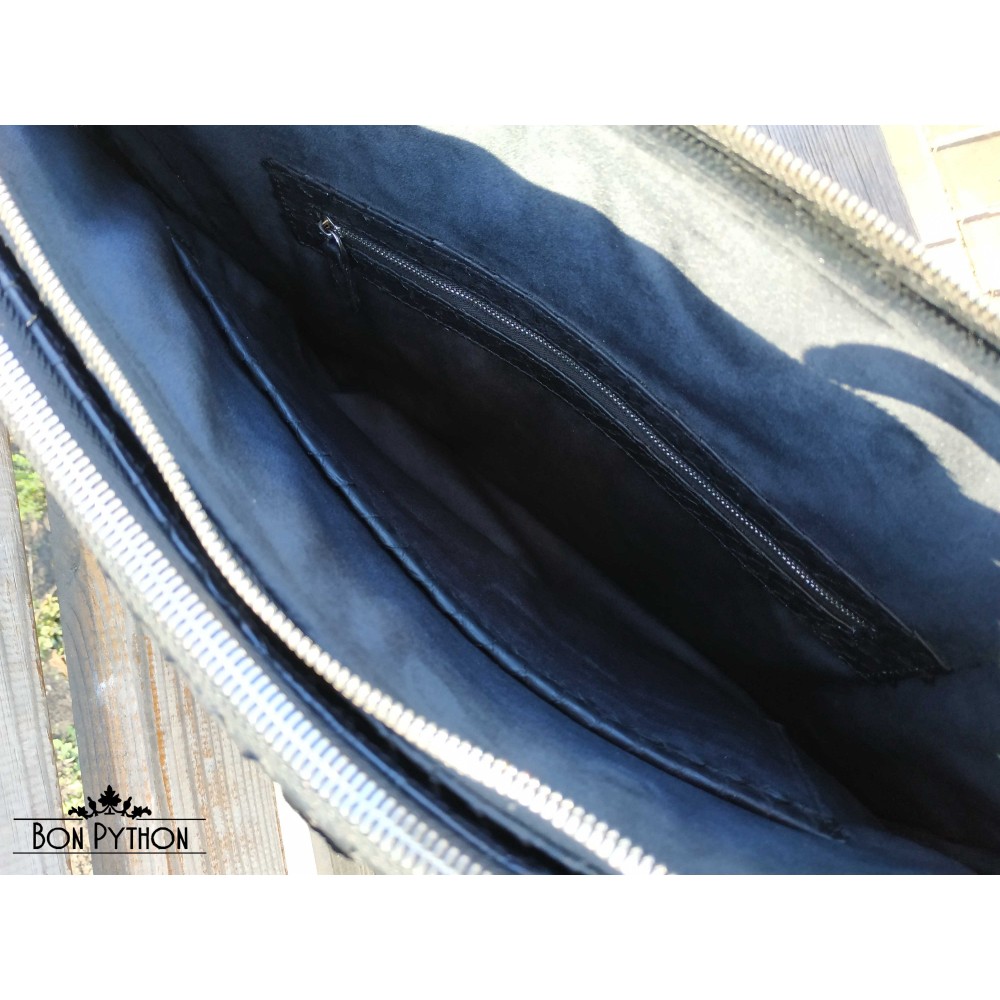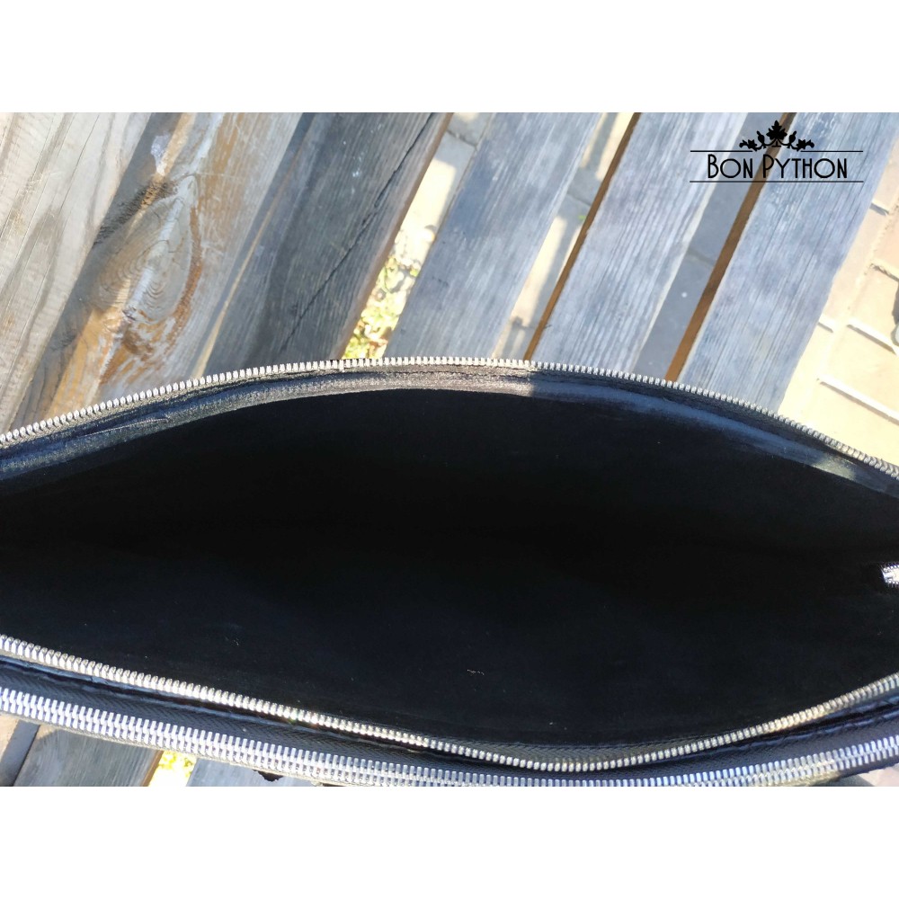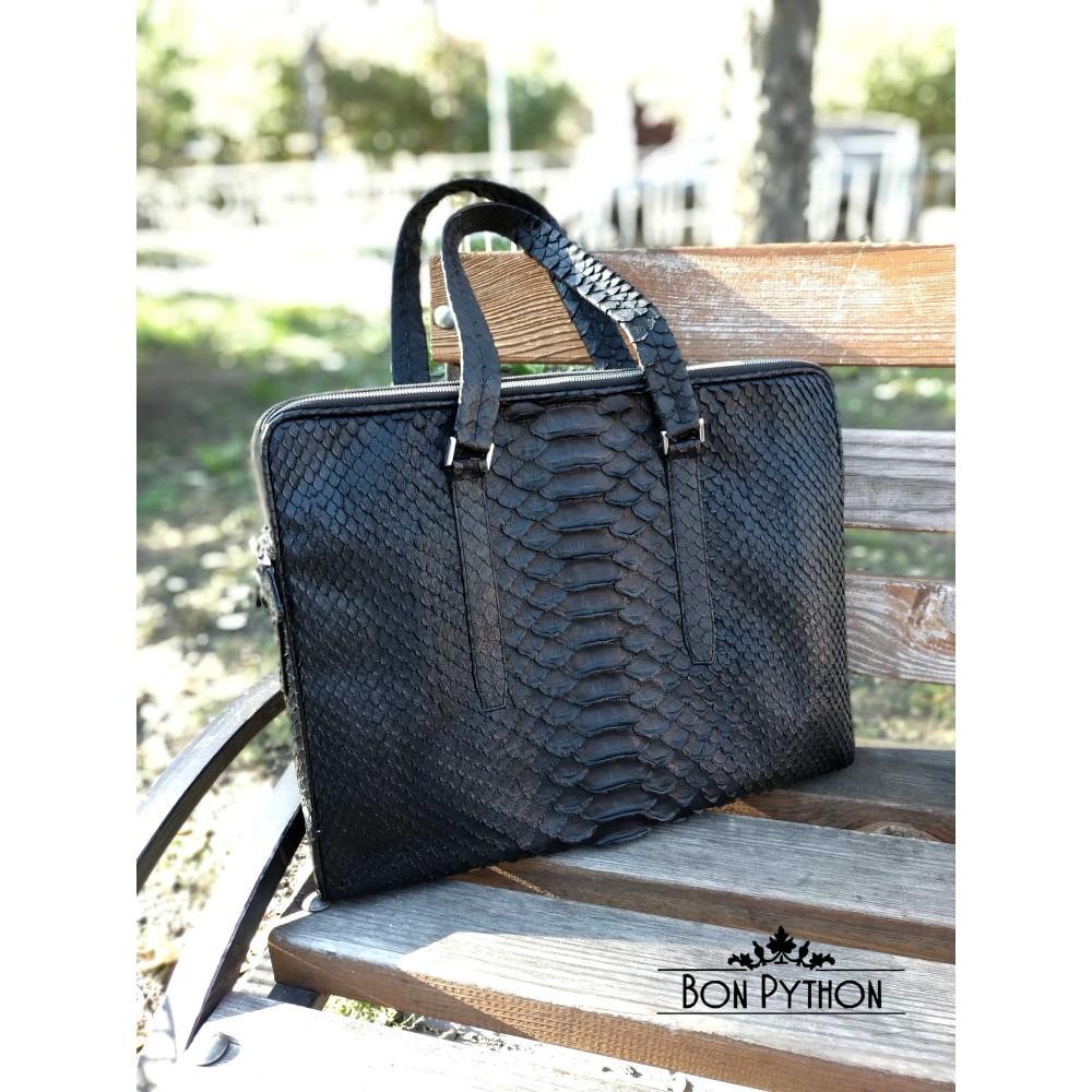 Сумка для ноутбука выполнена в черном цвете из кожи королевского питона Dragon. Содержит 3 отделения: два отделения, закрывающиеся на молнию и между ними одно отделение на скрытых магнитах. Плечевой ремень регулируется по длине.