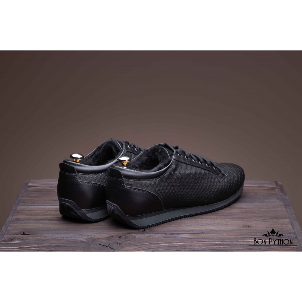 Кеды из натуральной кожи питона в черном цвете. Внутри натуральный мех.