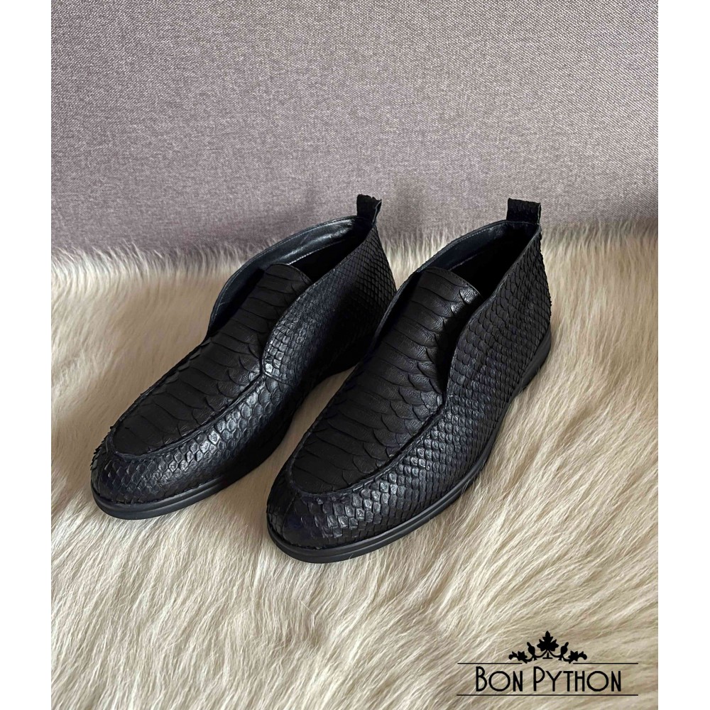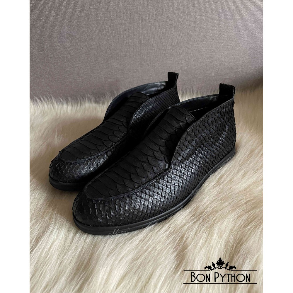 Ботинки из кожи питона Dayton (black) на меху