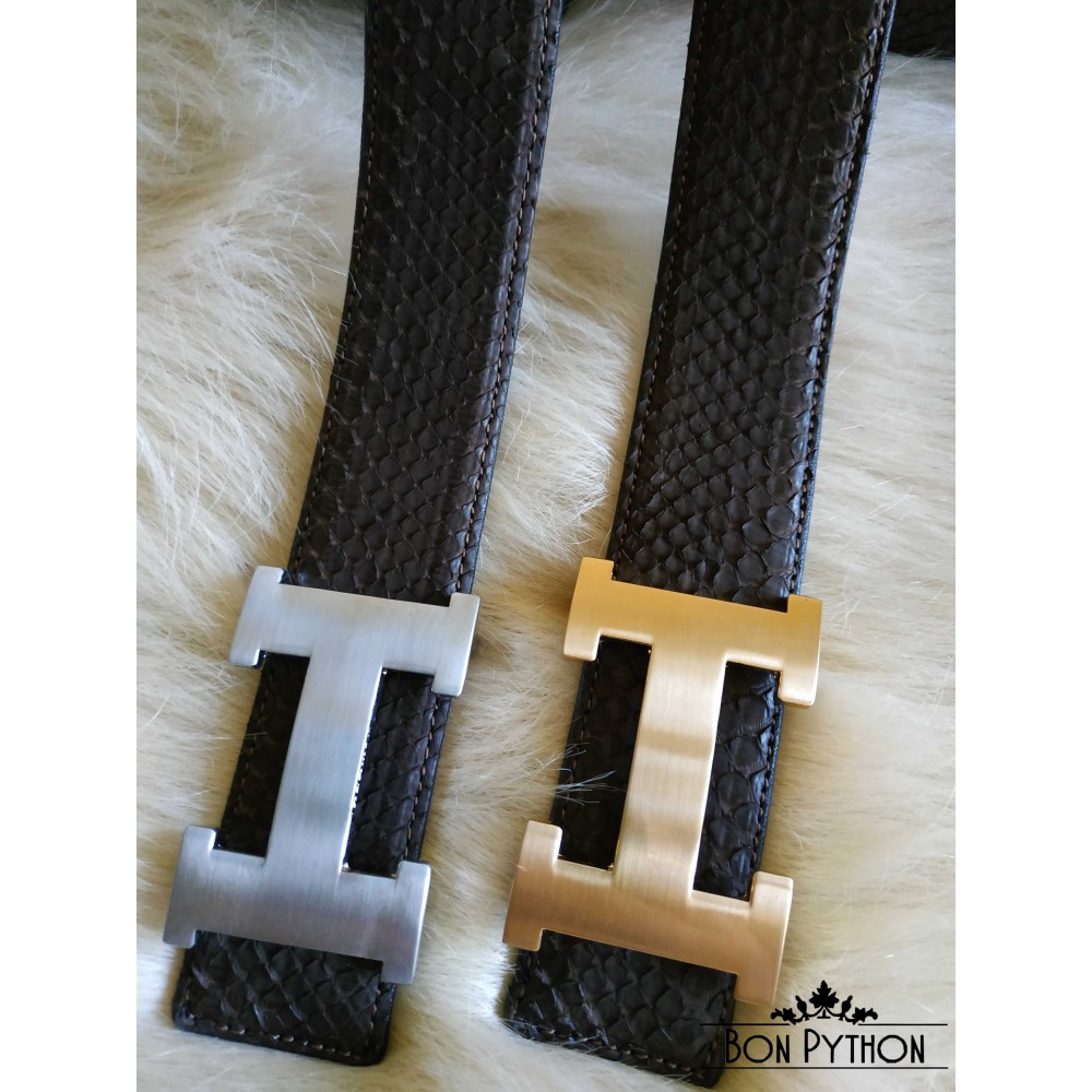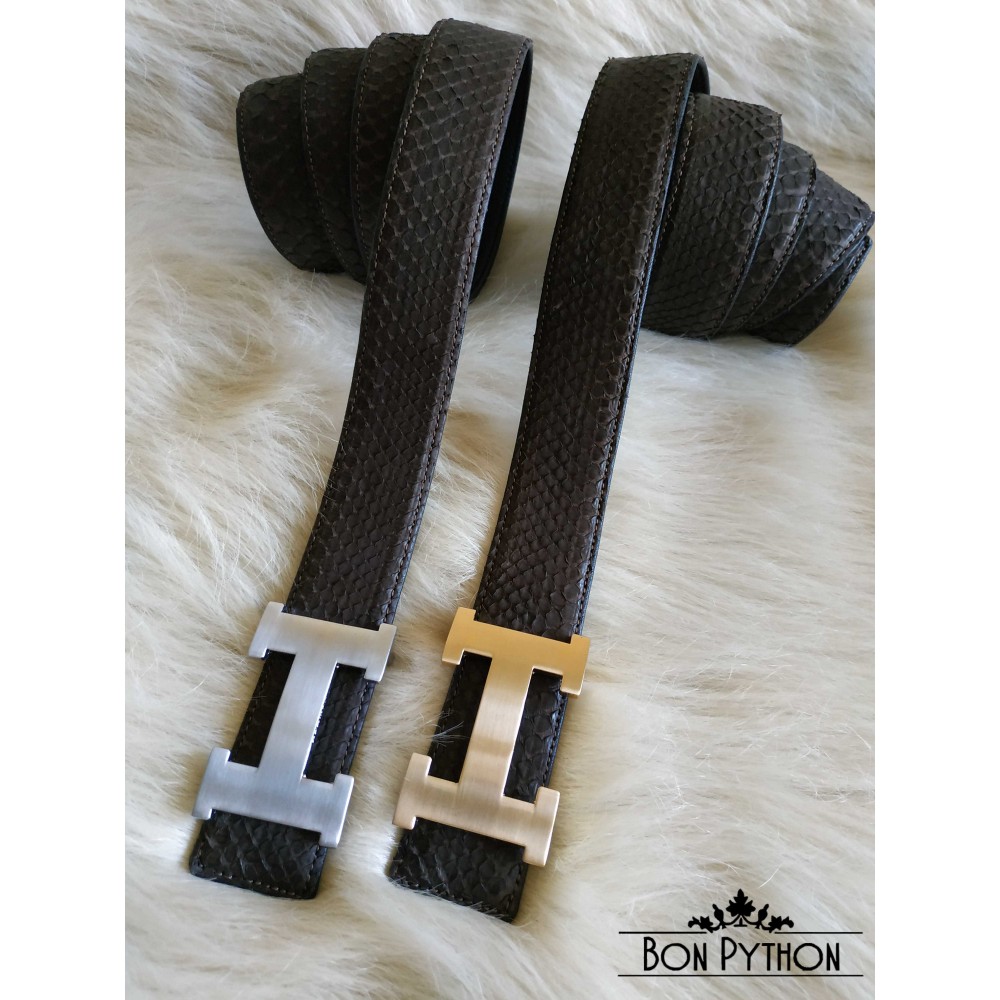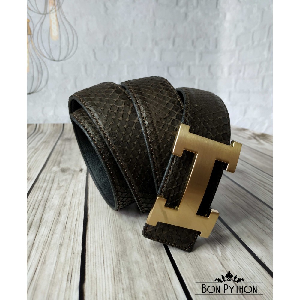 Ремень из кожи питона коричневый (фурнитура золото, серебро)