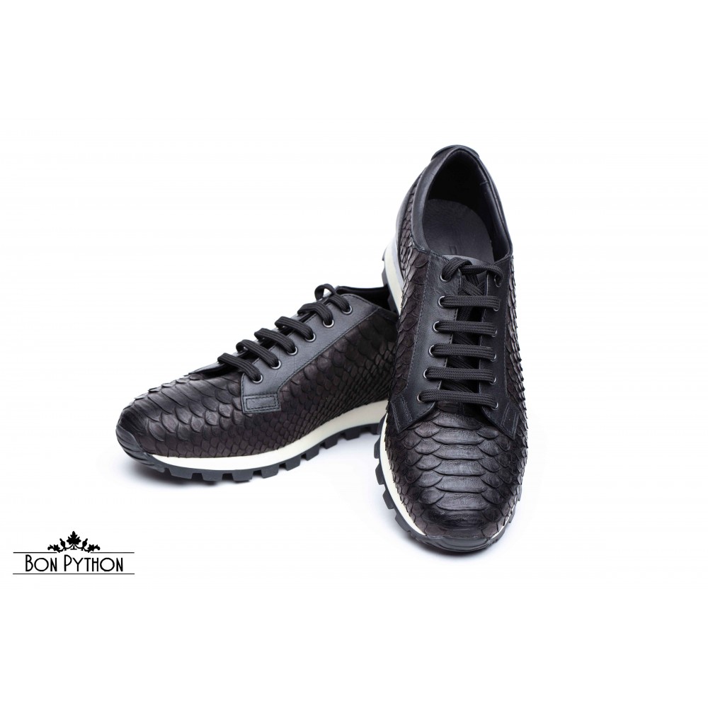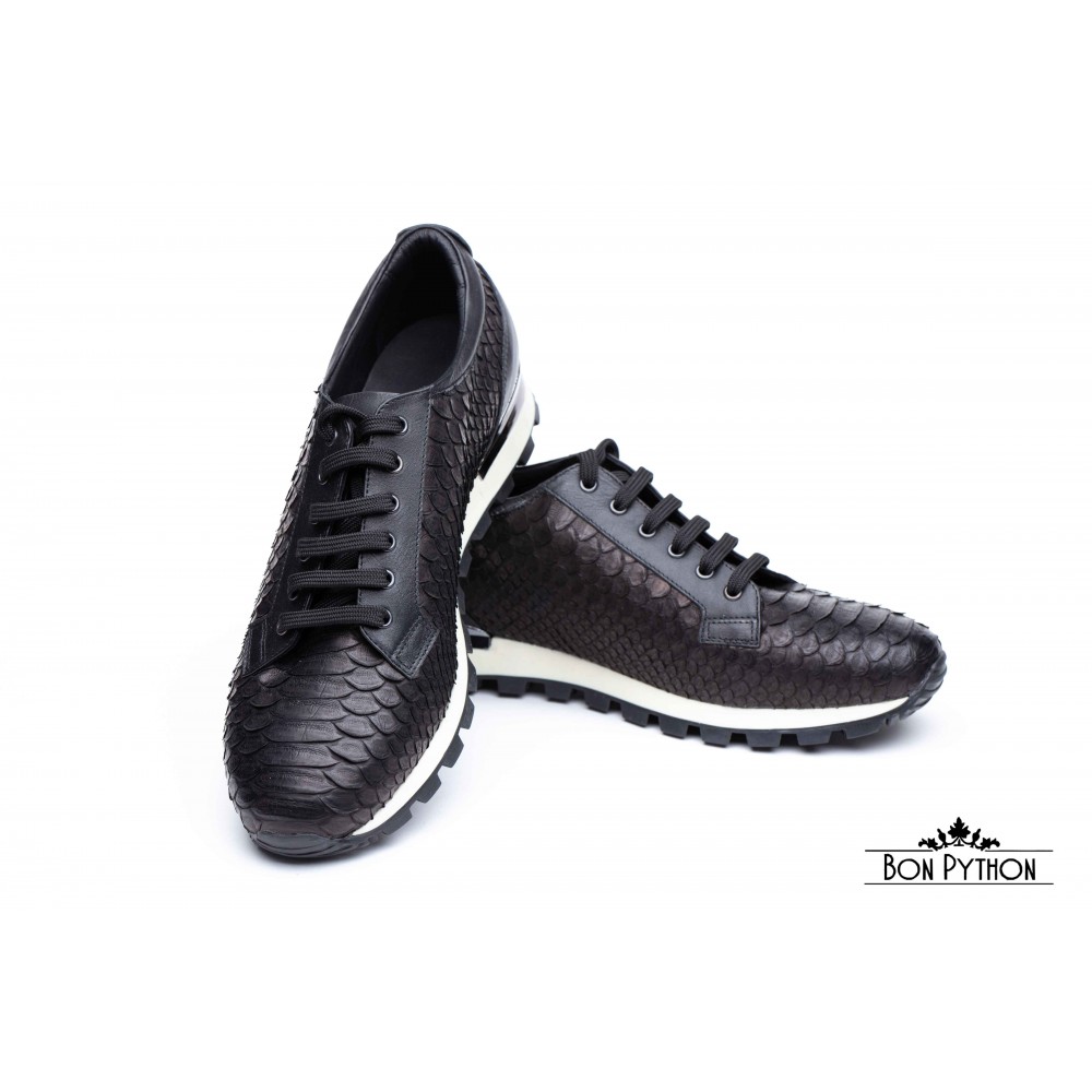 Кеды из натуральной кожи питона  с кожаными вставками в черном цвете.